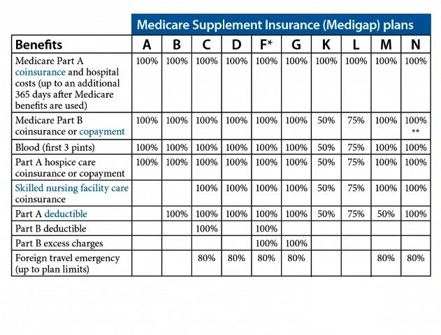 Some states only offer Medigap plans to age 65+ or have an alternative to the plans listed in the chart.