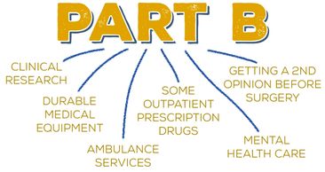 Medicare Part B may cover medically necessary services, clinical research, ambulance, mental health, durable medical equipment, and some outpatient drugs.